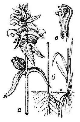 У погремка весеннего различают обычные стеблевые листья, прицветные листья и листья вставочные, располагающиеся кверху от последней пары ветвей и до начала соцветия. Листья цельнокрайные или пильчато- или городчато-зубчатые, супротивные.