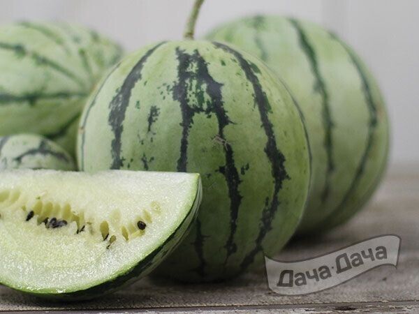 Весит новый сорт арбузов около трех килограммов, у него круглая, гладкая форму, его корка желтоватая, без рисунка и также белая мякоть с мелкими тёмными семечками.