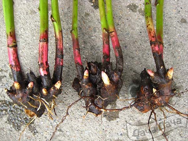 Обильно полейте растение и подкопайте на расстоянии полуметра от цветка. На следующий день выкапывайте корневища вилами, а не лопатой. Делят корневища садовым ножом, чтобы на каждом оставалось по 3-4 корешка и 3-4 почки.