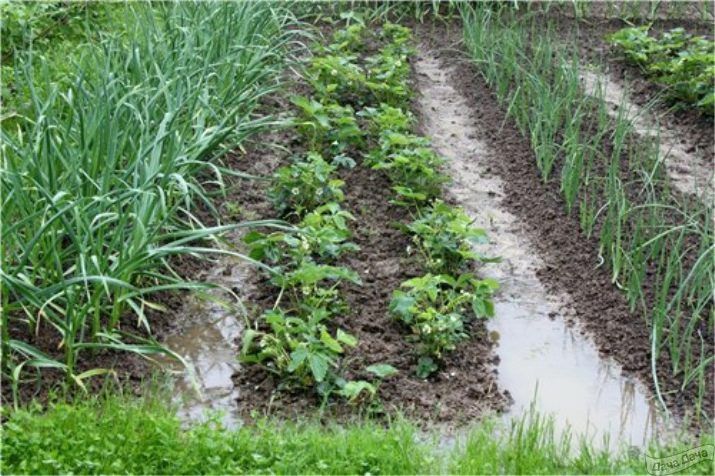 Сделайте в промежутке между ливнями, при окучивании, высокие гребни для грядок. Установите между рядами дренажные стоки. Также при регулярных дождях, необходимо постоянно рыхлить грядки. Благодаря рыхлению, к клубням и корням увеличится доступ кислорода и вероятность гниения снизится.