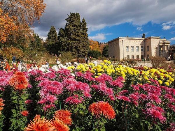 Осень скоро закончится, а Никитском ботаническом саду в Крыму разгар цветения хризантем. Проходит 66 - ая по счету выставка лучшего осеннего цветка. Ноябрь в Крыму теплый, солнечный и мягкий. Выставка получила название «Золотой цветок». И поэтому неудивительно, что на ней представлено много желтых хризантем