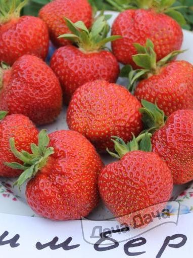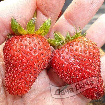 Ягоды средние или крупные (в среднем 30 граммов), конусообразной формы, оранжево-красные с желтыми крапинками-семенами. Мякоть плотная, сочная, ароматная. Вкус сладкий с легкой кислинкой.