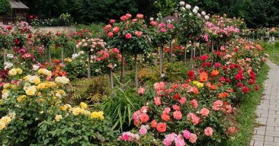 В рабатки можно высаживать розы любых групп и сортов, от миниатюрных до плетистых, соблюдая одно единственное правило-высота растений не должна превышать 1 м. Исключение составляют плетистые и штамбовые розы, выступающие фокусными растениями.