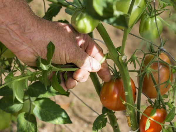Первый раз растения привязывают к кольям сразу после посадки, привязывая их восьмеркой возле самого первого листика. И по мере того, как растение растет и развивается, его нужно подвязывать после 2 и 3- ей кисти. К проволоке, натянутой вдоль грядок, растения привязывают так же.