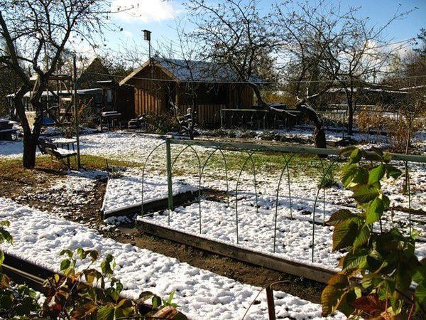 Снегом стоит заполнить пустые садовые бочки, также его рекомендуют разбрасывать на грядки, где растут озимые, на огородные грядки, и еще снегом можно укрыть цветы многолетники.