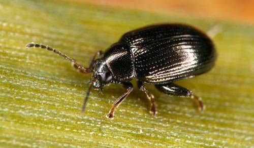 Внешний вид - Мелкие прыгающие жуки длиной до 2,5 мм, темно-бронзовой окраски с зеленым оттенком.