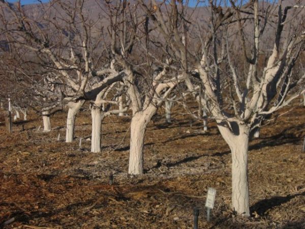 Она защищает очень хорошо, но краска не дает коре дышать так, как известь. Поэтому большинство садовников используют именно известь. Деревья, которые нужно побелить.