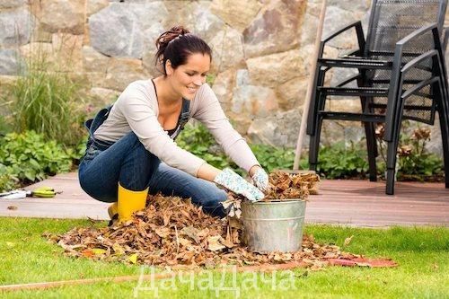 3. Убираем с участка сухую листву и подгнившие плоды. Гниль сжигаем. Если этого не сделать весной вас одолеют гусеницы. Листву можно забросить в компостную кучу и присыпать известью.