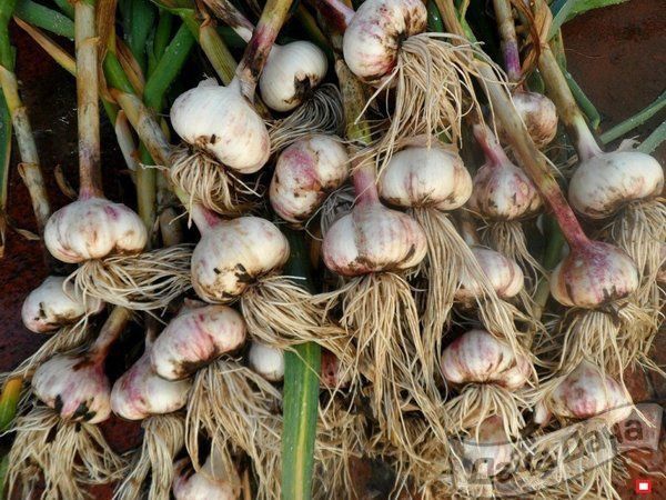 Чеснок выбирают из земли, на три дня раскладывают для просушки. Затем собирают и обрезают перья. Длина перьев, которые вы оставили, не должна превышать 5 см. Хранят в тепле от 17 до 19 градусов тепла и до - 3 градусов холода.