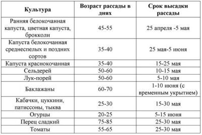 Февраль-время начала посевов. В таблице ниже приведены сроки высадки рассады в грунт, что поможет определиться с сроками посева.