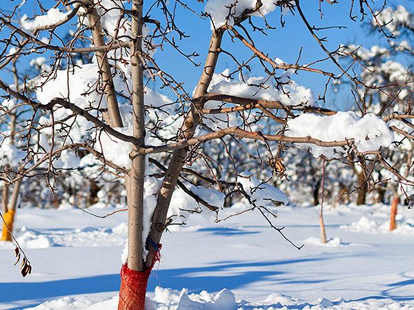 От большого скопления снега могут треснуть стволы молодых саженцев. Особенно это опасно для хвойных растений: можжевельника, туи, елей, сосен. Поэтому хвойники обычно обвязывают шпагатами, веревками, сохраняя их крону.
