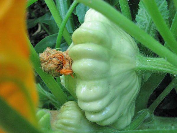 Растут патиссоны кустами, а не лианами. Плоды у этой культуры зеленые, белые, желтые. Форма похожа на тарелку с волнистыми краями.